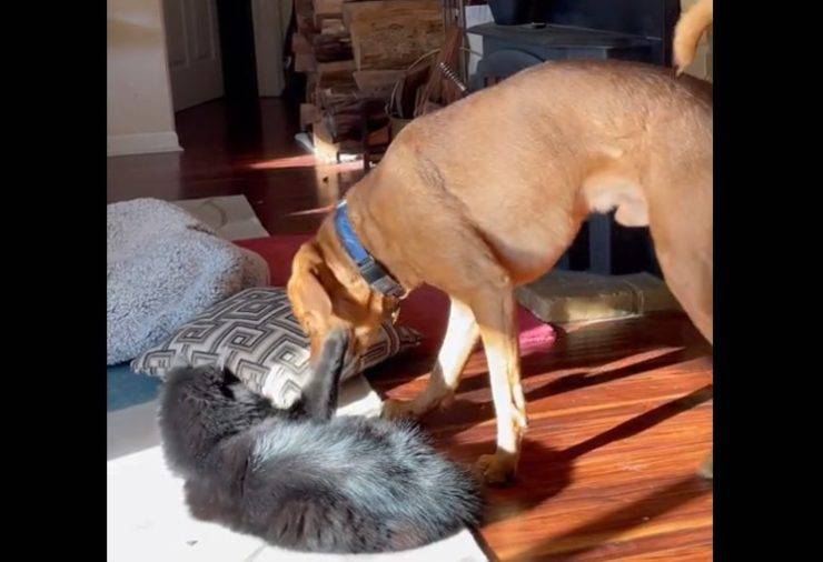 Ma qual è il motivo di tanta tristezza e disperazione? Basta proseguire con la visione del video per scoprire cos’è stato a scatenare quella reazione nel cane. Nella seconda metà del filmato è infatti possibile vedere Myko pochi attimi prima della tragedia mentre è intento a giocare con una pallina proprio nelle immediate vicinanze del gatto di casa.