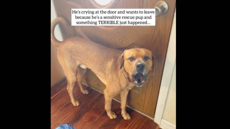 Il video si apre con Myko disperato che chiede a gran voce di andarsene di casa, posizionandosi proprio dietro alla porta guaendo e piangendo. Oltre ai lamenti del povero cane disperato, in sottofondo è possibile sentire la padrona che prova in tutti i modi a consolarlo, ma a lui sembra non importare nulla. Ormai ha deciso che vuole andarsene. Myko sembra davvero tristissimo e inconsolabile.