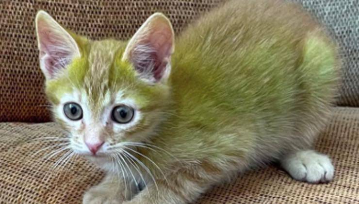 Se i gatti dal pelo rosso, o arancione, sono piuttosto comuni in natura: l’eccezione del gatto dal pelo verde sembra non esserlo affatto. Eppure, secondo quanto affermato dal papà umano di Eraser, anche i veterinari avrebbero confermato l’idea secondo la quale questo curioso piccolo micio possa essere nato esattamente di questo colore.