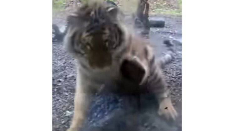 Sono sufficienti pochi secondi perché l’animale si slanci in avanti e con un balzo fulmineo raggiunga il bambino. Se non ci fosse stato il vetro, la tigre avrebbe fatto cadere a terra il ragazzo. La recinzione, invece, blocca l’impeto della tigre, che si ritrova a spingere le zampe contro il vetro nel vano tentativo di raggiungere gli umani.
