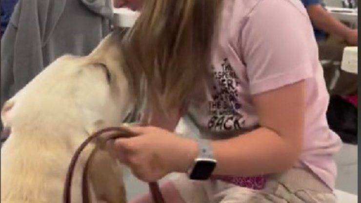 L’incontro più dolce di oggi riguarda una bambina con il diabete che vede per la prima volta il suo cane da salvataggio.
