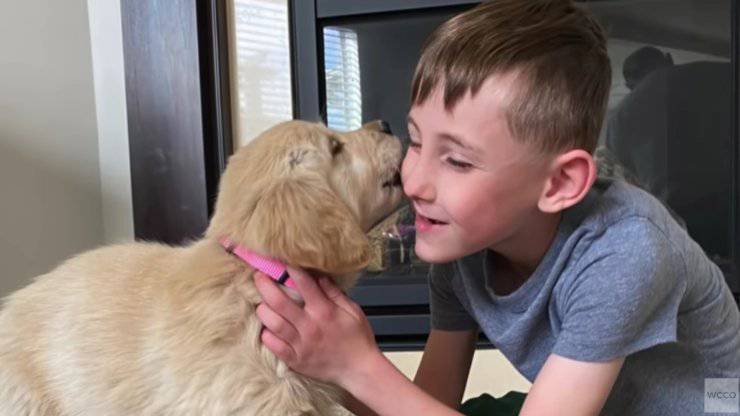 Il cucciolo di Golden Retriever nato in un allevamento in Minnesota, il Rolling Oaks Goldens, è stato speciale fin dalla nascita. Così come è speciale un bambino di 7 anni che ha perso una gamba.