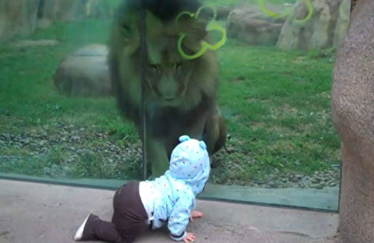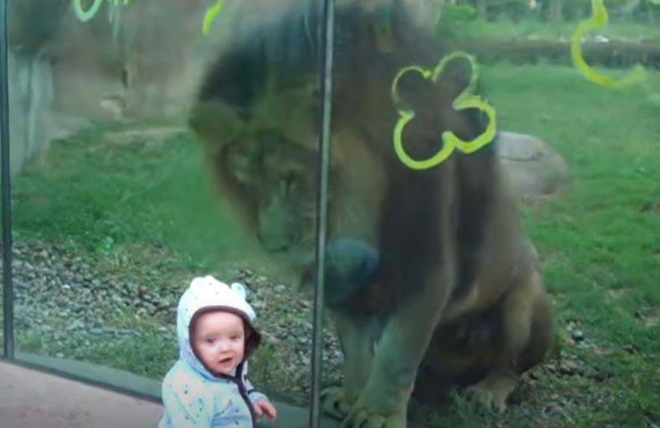 La reazione del leone alla vista di un bambino piccolo davanti al proprio recinto allo zoo ha sorpreso tutti: le incredibili immagini in un video sul web.