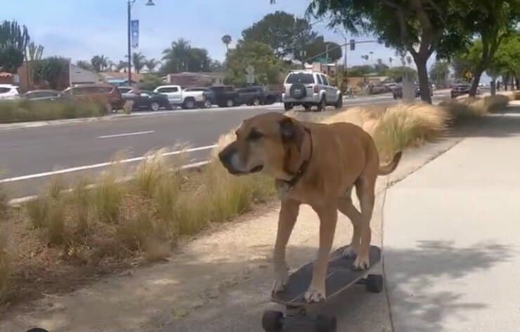 Da bravo maestro Mike ha insegnato piano piano a Bamboo ad andare sullo skate, e il cucciolo è stato un bravissimo alunno. Dopo un po’ di tempo, il cane era diventato talmente bravo che neanche Mike riesce più a competere con lui.