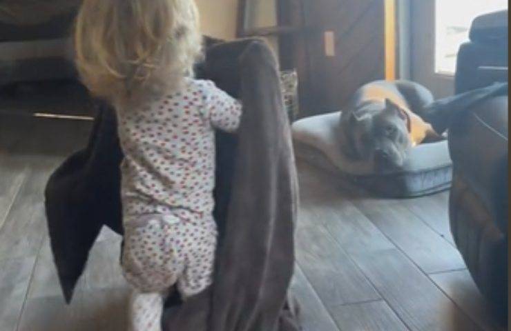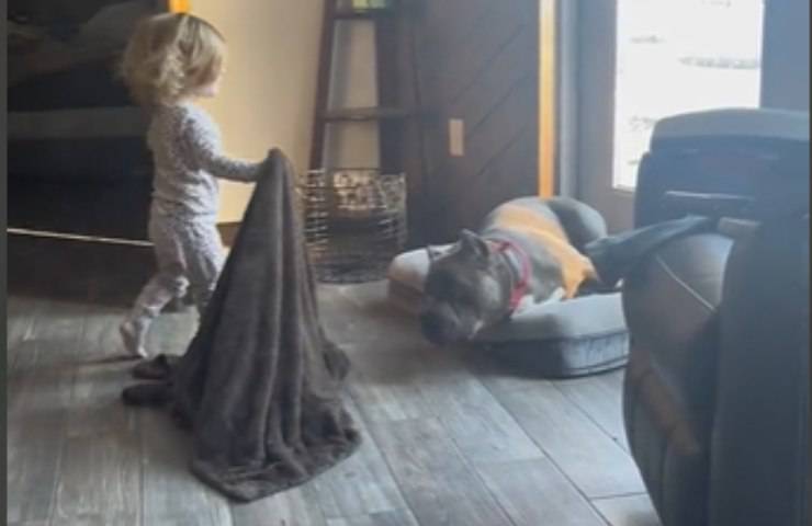 Così è stato per la piccola protagonista di un video condiviso su TikTok dalla mamma della bambina, Brandi Chapman, sul suo profilo social @brandichapman04. Il filmato mostra il momento in cui la bimba, appena sveglia, si avvicina al divano dove è sdraiata la madre e le toglie la coperta per portarla al cane di casa, un esemplare di American Bully dal manto marroncino di nome Sully.