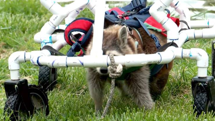 Boone torna a camminare grazie a una sedia a rotelle: il procione disabile aiutato da un team di ragazzi