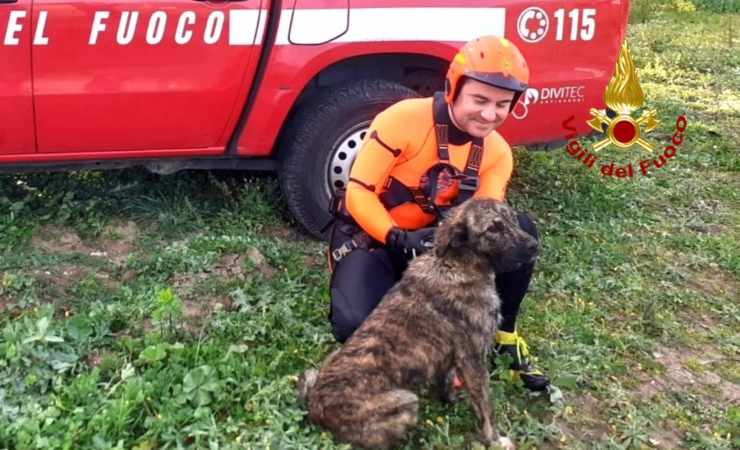 L’intervento dei pompieri ha salvato un cane caduto nel pozzo