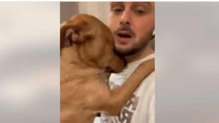Cagnolina abbraccia il suo padrone prima che vada al lavoro, una scena dolcissima -VIDEO