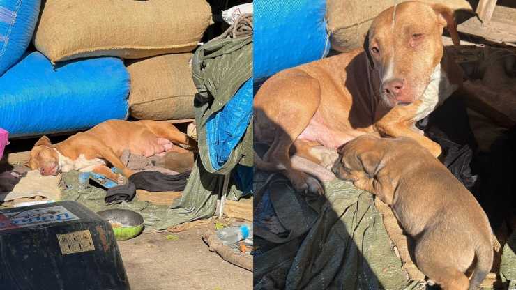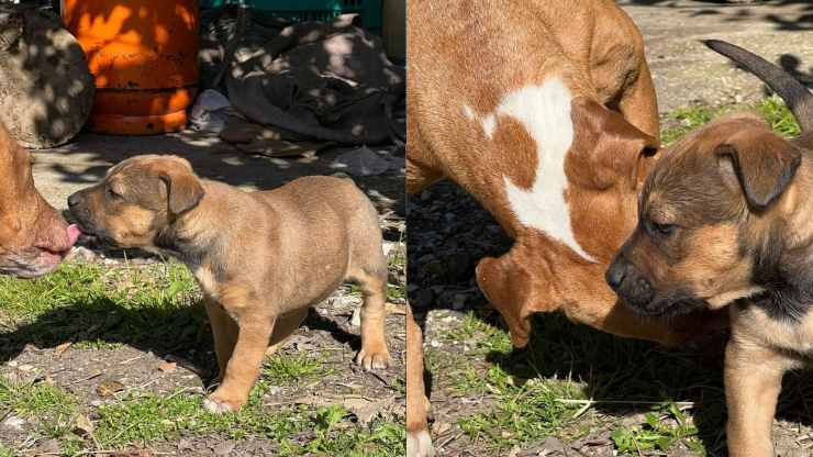 La cagnolina però non era sola: con lei vi erano i suoi tre cuccioli appena nati, gli unici sopravvissuti della cucciolata.