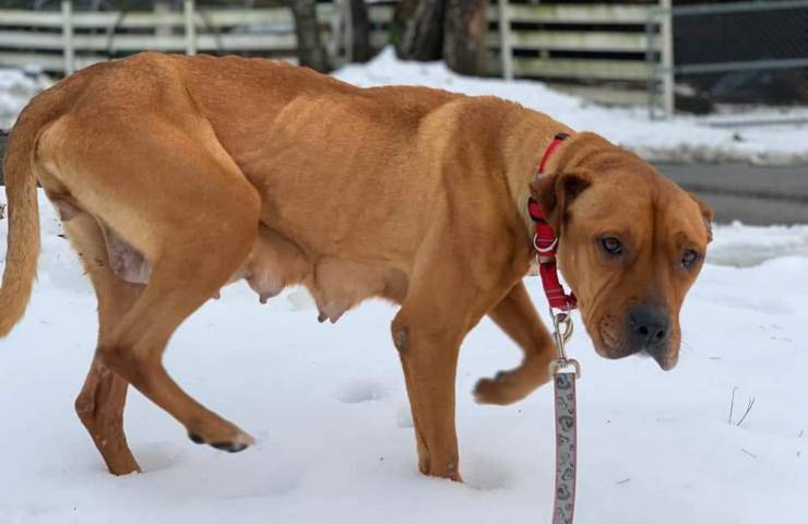 Questa cagnolina ha sfidato diverse difficoltà e intemperie per riuscire a sfamare i suoi cuccioli: sono rimasti diverse settimane senza cibo.