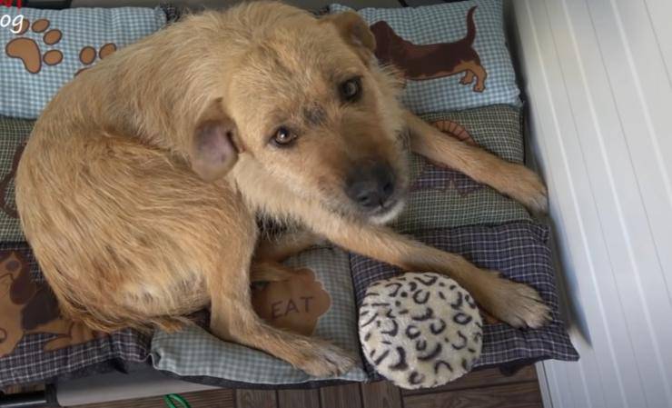 La cagnolina è sempre triste anche dopo essere stata salvata
