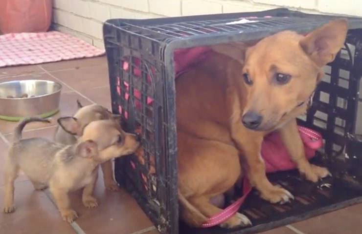 Quando però la cagnolina ha iniziato a riprendersi, i volontari le hanno riservato una dolcissima sorpresa. Le hanno permesso di ricongiungersi con i suoi cuccioli e la scena – molto commovente – è stata condivisa su YouTube ad inizio estate. La mamma dei cuccioli, che sembra essere il frutto di un meraviglioso incrocio con un Pinscher Nano, ha potuto così riprendersi completamente grazie alle accortezze dei volontari ed ha potuto dare finalmente tutto l’amore che desiderava ai suoi piccoli.