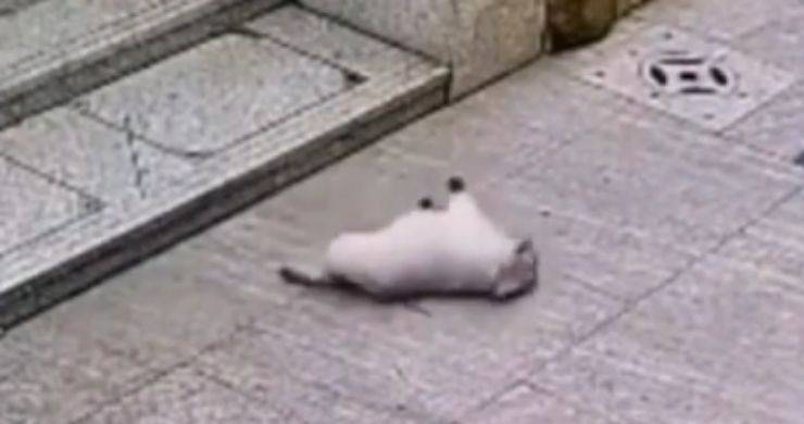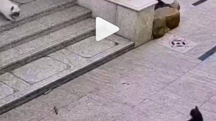 Fido ha fatto una pessima figura con il felino. Era convinto di riuscire nella sua impresa ma ha dovuto cambiare idea. Il gatto ha mostrato la sua furbizia e intelligenza che gli hanno permesso di sfuggire all’intento del quattro zampe. Tutto è nato per caso, come accade nelle cose più belle e stravaganti messe in atto dai nostri amici a quattro zampe. Un adorabile felino dal manto grigio si stava godendo la sua consueta passeggiata quotidiana quando all’improvviso ha visto arrivare verso di sé un cagnolino che inveiva verso di lui. Il suo gesto ha insospettito il felino ma non gli ha provocato nessun tipo di timore. Forse, avvertiva dentro di sé che non c’era nessun pericolo e poteva stare tranquillo. Poco dopo infatti, il cagnolino è sceso dalle scale, intenzionato ad andargli incontro, inaspettatamente perde l’equilibrio e finisce con la schiena a terra. A quel punto, il pelosetto non riesce più ad alzarsi. Il gatto, divertito dalla sua azione inaspettata, invece di aiutare il quattro zampe ha scelto di godersi la scena, osservando con piacere tutto lo spettacolo. Il gatto approfitta di questo momento per rimanere tranquillo, consapevole che il cane non può fargli nulla, conciato in quel modo. Le sue previsioni sono esatte perché il cagnolino non appena si è alzato in piedi, non aveva più la forza di reggersi sulle sue zampe.
