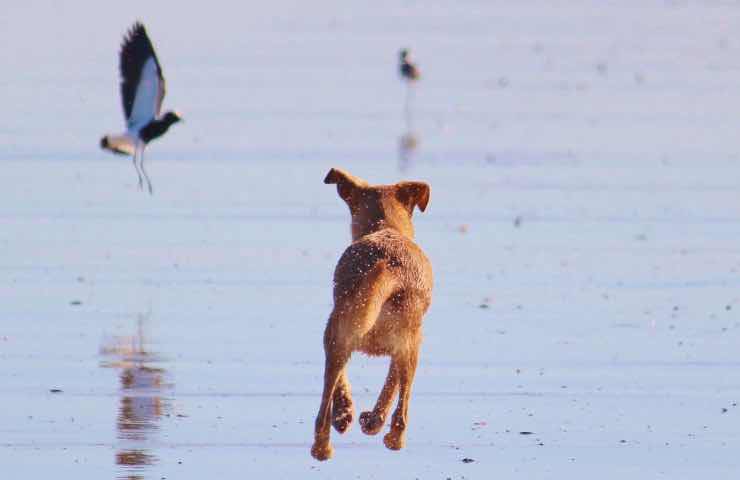 Cagnolino portato via da un gabbiano, paura in spiaggia