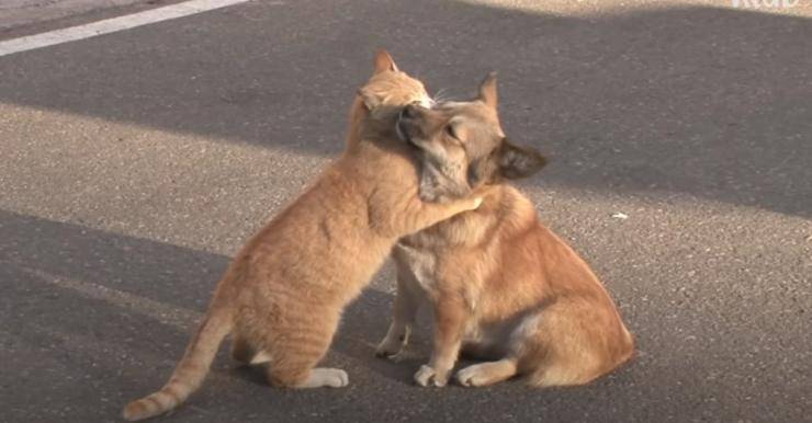 “Si abbracciano per tenersi caldi quando dormono insieme la notte. Forse pensano di essere nella stessa situazione da quando si sono incontrati per strada. Sanno di essere diversi, ma vanno d’accordo, si confortano a vicenda“, ha raccontato uno dei residenti. Fortunatamente, un buon samaritano, è venuto in loro soccorso e ha raccolto dalla strada sia il cagnolino che il gatto in modo che non venissero separati. Li ha portati nel rifugio, ove ora aspettano di trovare casa.