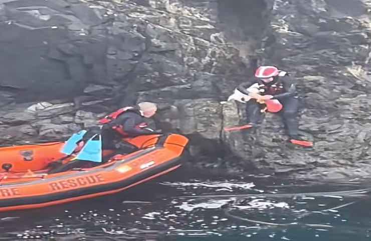 Probabilmente dopo una bella caduta di qualche metro, il cane finisce sulle rocce resta bloccato, la squadra di salvataggio viene allertata e si precipita sul posto per cercare di salvarlo. Dopo varie peripezie per raggiungerlo e riuscire a prenderlo, gli agenti sono riusciti a portarlo in salvo. Il tutto viene ripreso in un video, un uomo era affacciato proprio sulla scogliera quando ha avvistato il cane.
