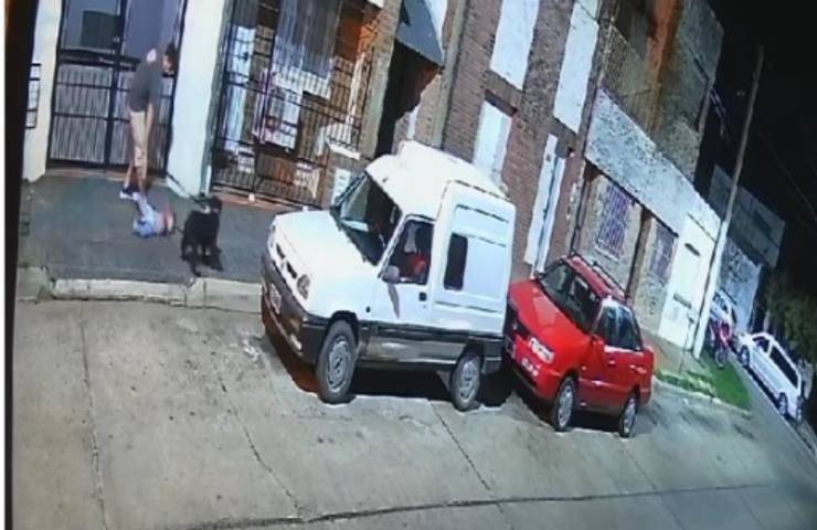 Necochea e Pasaje Boedo, nel cuore di Villa María Selva erano le 22 di venerdì sera quando le telecamere di sicurezza di una abitazione hanno ripreso una scena orribile un uomo stava portando a spasso un cane al guinzaglio, accompagnato da un bambina molto piccola.