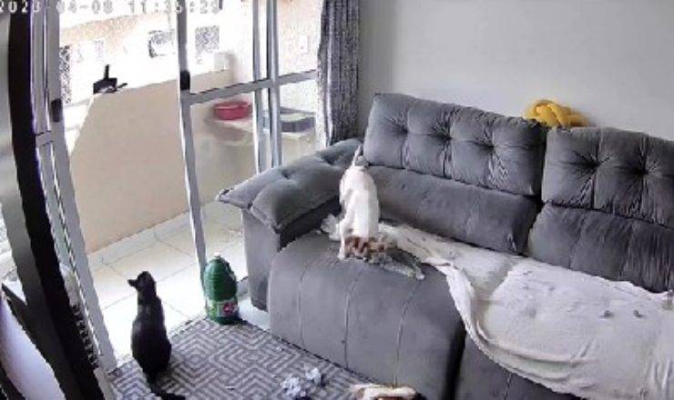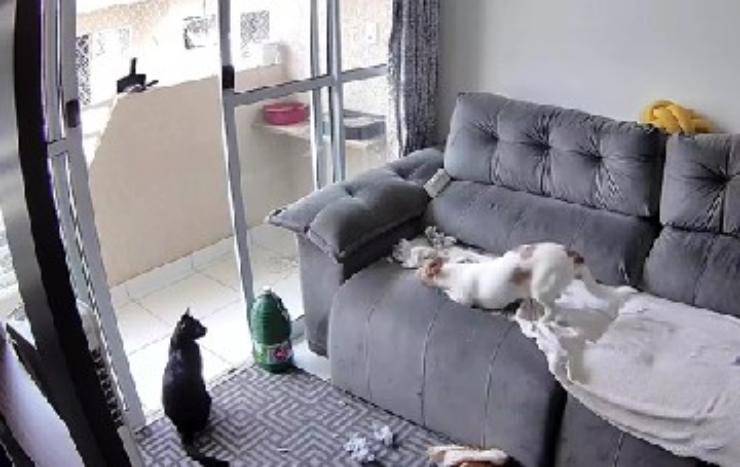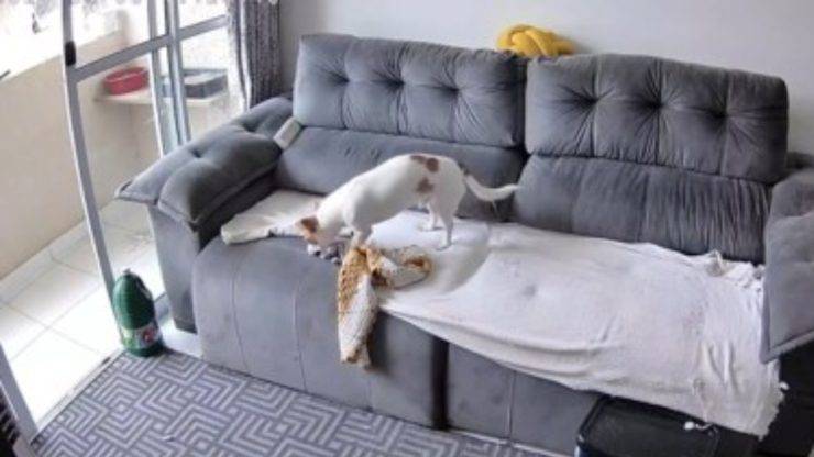 Il fatto è stato registrato dalle telecamere di sicurezza installate per tenere d’occhio gli animali domestici quando restano da soli. Il video è stato poi condiviso dalla tutor Amanda Machado, la quale spiega che un giorno dovevano uscire di casa e, nella fretta, hanno dimenticato di mettere in sicurezza il divano.