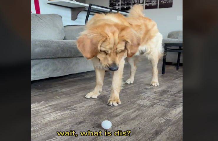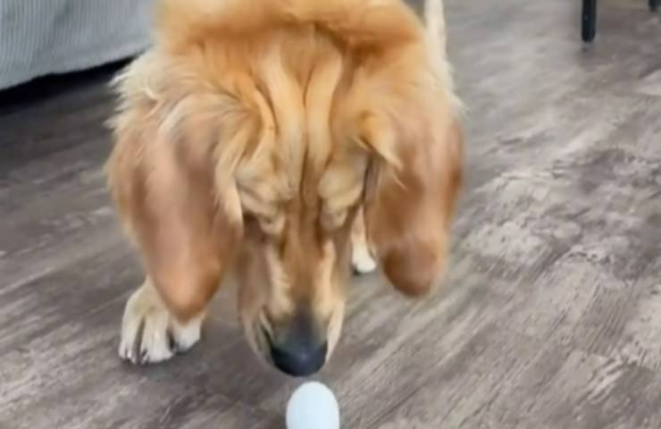 Cane crede che l’uovo sia un nuovo “giocattolo”: l’animale sembra euforico e alla fine finisce per romperlo