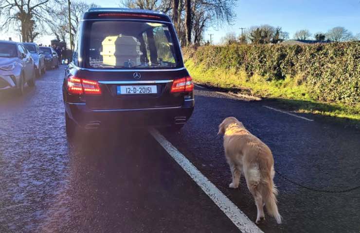 La donna a cui appartiene il fedele cane co-protagonista di questa commovente storia era in quel momento ricoverata nella struttura ospedaliera di Mullingar, che si trova nella contea di Westmeath. Dopo la sua morte, e durante il corteo funebre in suo onore – svoltosi nella località di Killashee – il suo Golden Retriever avrebbe continuato imperterrito a seguito la bara della sua padroncina dimostrando di non volerla lasciarla fino alla fine.
