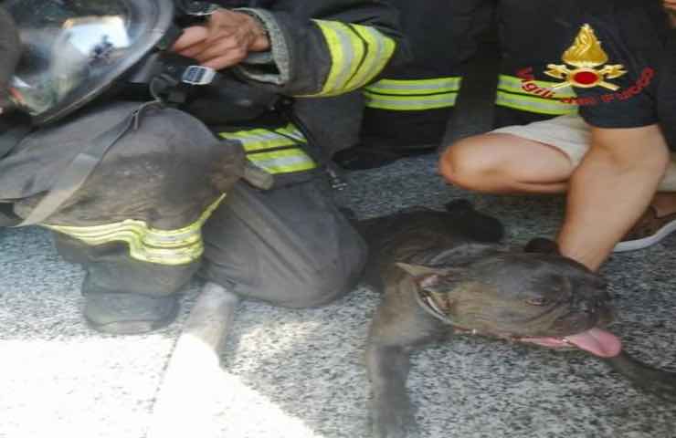Scoppia un incendio e un cane resta in trappola, arrivano i vigili del fuoco.