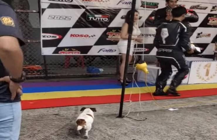 Cane invade podio per festeggiare: il gesto è stato ripreso ed è stato condiviso con tutto il mondo