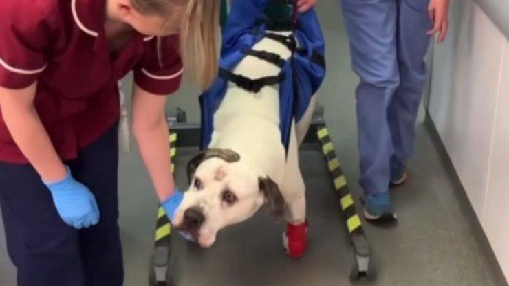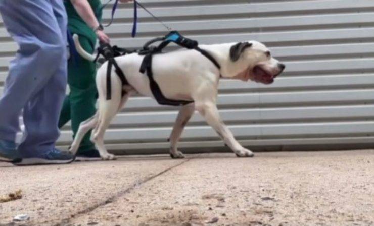 L’american bulldog di nome Cesar, quando è rimasto coinvolto nell’incidente, si è fratturato il collo non riuscendo a muovere le zampe anteriori e a muovere solo poco la schiena. C’era la possibilità che non potesse più camminare. Il suo calvario è iniziato quando ha attraversato di corsa una strada trafficata dopo essersi spaventato per un altro cane. I proprietari di Cesar sono rimasti sconvolti dall’accaduto e temevano il peggio.