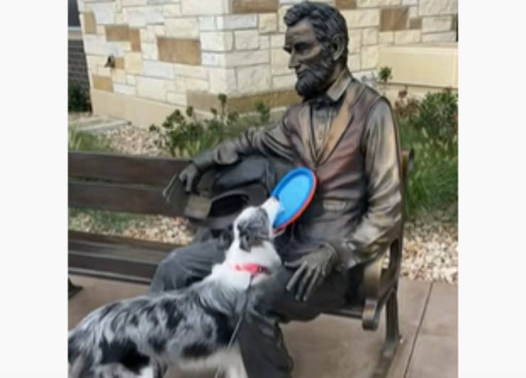 Un simpatico video sta facendo il giro del web: un cane lancia il frisbee ad Abraham Lincoln ma lui non reagisce! Rimane immobile come una statua!