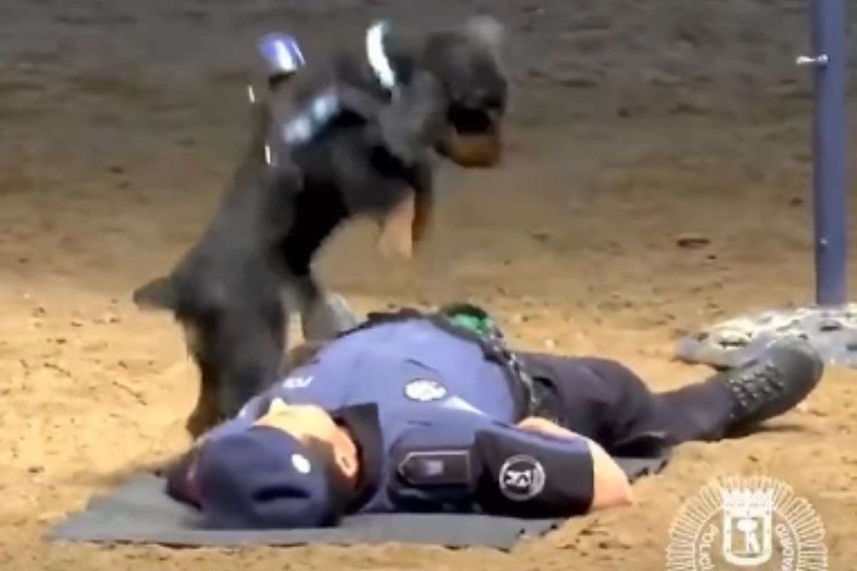 Si trattava di una dimostrazione ad opera dei cani del gruppo cinofilo della Polizia di Madrid, e in particolare della Unidad Canina di Madrid, che vedeva protagonista un improvvisato ‘dottore’ a quattro zampe, Poncho, che praticava la manovra di massaggio cardiaco a un poliziotto che ‘fingeva’ di essere svenuto e disteso sulla schiena. Al di là del fatto che il video è stato ‘spacciato’ come recente, di questi giorni, ma soprattutto si voleva far credere che il Fido fosse stato davvero addestrato a praticare quella manovra di primo intervento.