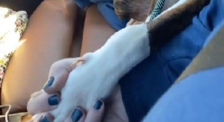 Il cucciolo di cane viene adottato e durante il tragitto verso casa non le molla più la mano: il gesto incredibile diventa virale – VIDEO.