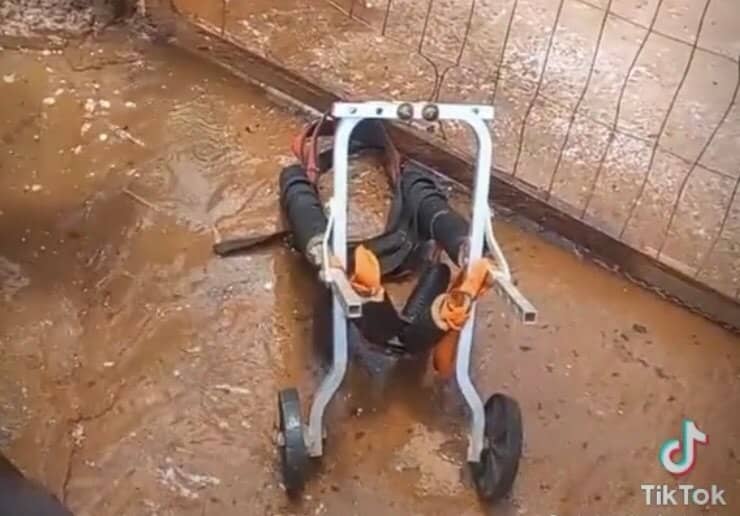 Quando è stato trovato hanno riscontrato che avesse anche una malattia dovuta alle zecche e una grave anemia. La sua mamma umana ha lottato insieme a lui ed oggi, grazie alla donna e alla sua sedia a rotelle è un cucciolo felice.