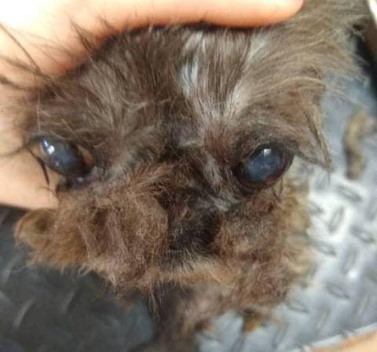 Ignari della terribile realtà celata dal quel groviglio di peli, lo staff dell’organizzazione ha portato il tenero Shih Tzu da una toelettatrice per farlo tosare.