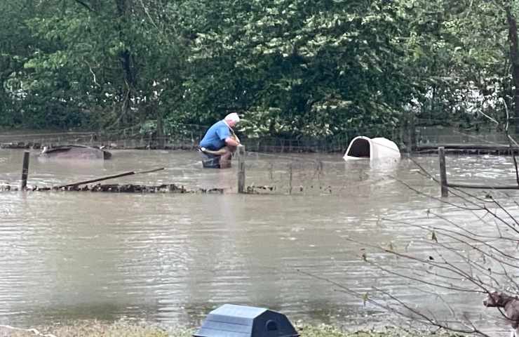 Cane in pericolo salvato dall’alluvione: il direttore del Dothan Animal Shelter, Bill Banks, partecipa al soccorso in prima persona