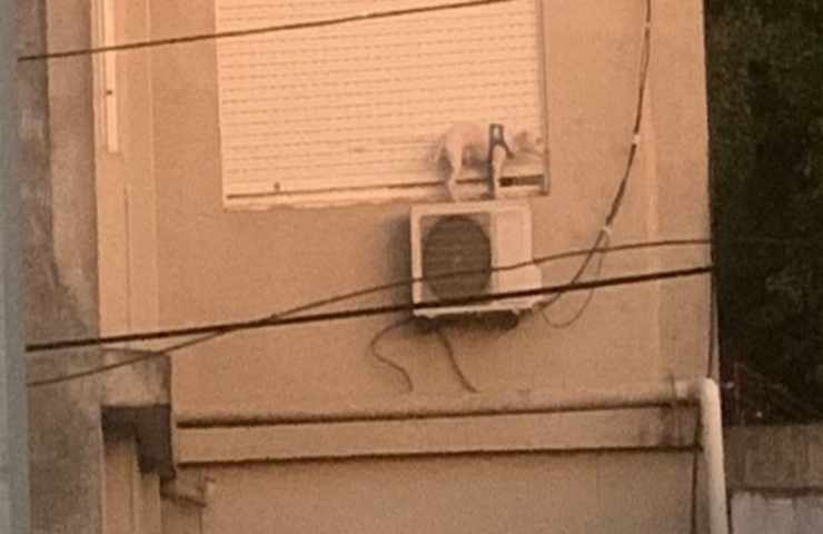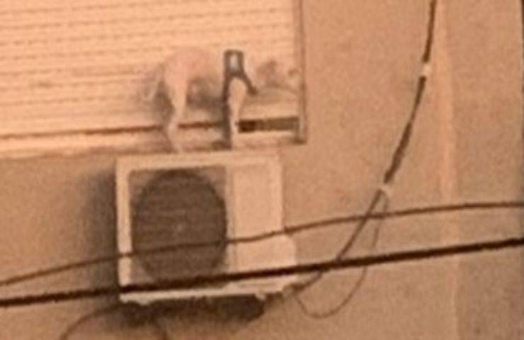 Cucciolo sul motore di un condizionatore stava per precipitare nel vuoto