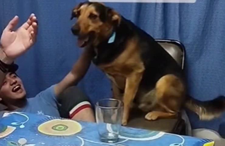 Spopola su TikTok un divertente video che mostra il simpatico cane Pipa che dopo aver scacciato il festeggiato ne ha preso il posto a tavola.