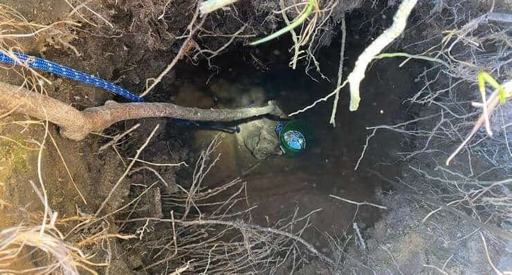 Arrivato dal cane il vigile non ha dovuto fare altro che mettere in sicurezza il cagnolino terrorizzato mettendolo nell’imbracatura mentre altri due vigili del fuoco hanno utilizzato una fune per tirarli verso l’alto e portarli finalmente in salvo. La buca era infatti strettissima e profondissima.