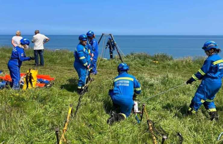 Immediatamente le squadre di soccorso hanno messo in pratica il loro addestramento e mediante l’aiuto di un verricello alcuni membri del team si sono calati fino alla base della scogliera raggiungendo il piccolo Button.