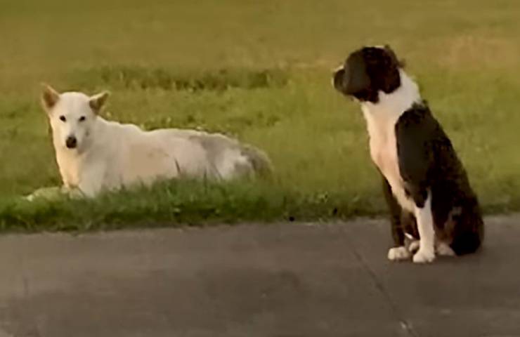 Il cane in video è stato ripreso mentre protegge un’amica in difficoltà e incinta: fortunatamente la cucciola viene poi soccorsa