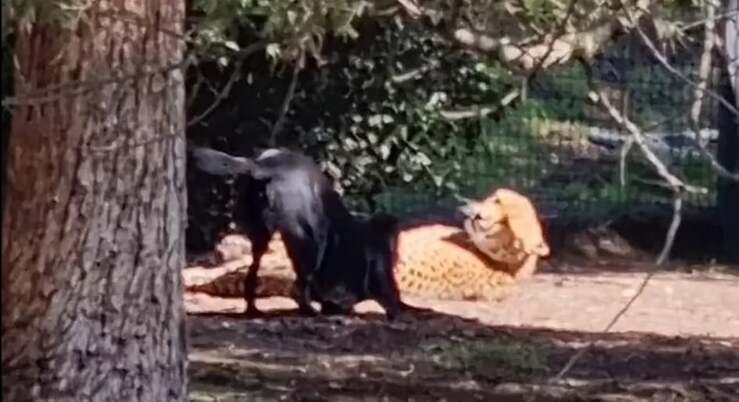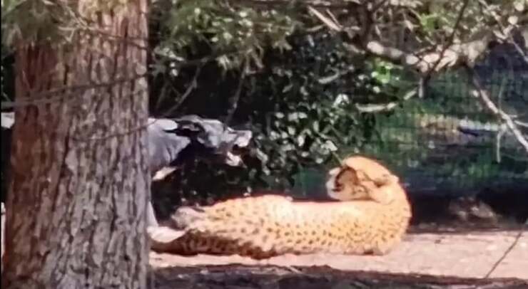 I visitatori di uno zoo sono rimasti scioccati e preoccupati quando hanno visto all’interno del recinto dei ghepardi un cane che abbaiava freneticamente contro i grossi felini.