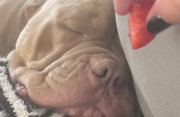Il cane Rhino sente l’odore della fragola durante il pisolino e ha un’incredibile reazione