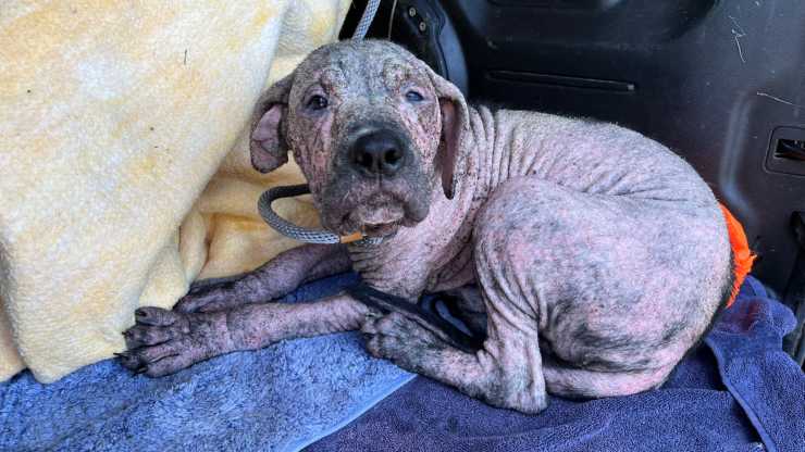 Le condizioni del cagnolino erano alquanto preoccupanti: l’animaletto riusciva a camminare a stento, poiché accusava un forte dolore alle zampe, e aveva perso quasi completamente il pelo.