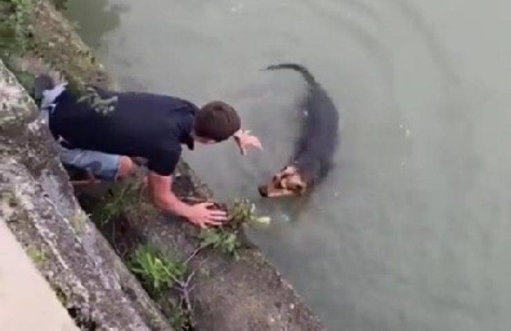 Stava per annegare nel canale: arrivano i passanti ad aiutare il cane
