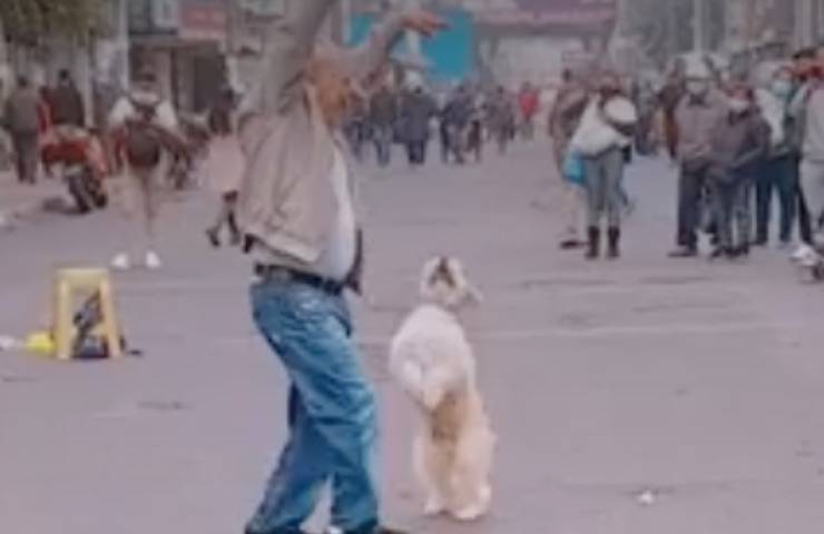 Cane e sconosciuto si muovono in perfetta sincronia: la danza è contagiosa – VIDEO