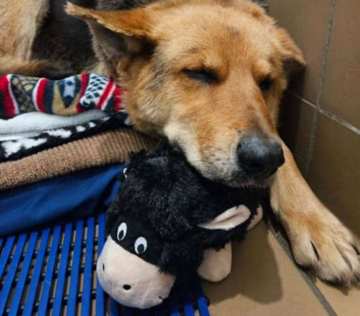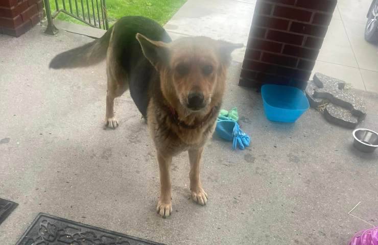 All’inizio di maggio, Gail Montgomery, cofondatrice della Almost Home Animal Rescue League, ha ricevuto numerose segnalazioni riguardanti un pastore tedesco che portava in giro con sé un peluche sotto la pioggia. Le foto ricevute le hanno spezzato il cuore e si è subito messa in moto per cambiare la situazione.