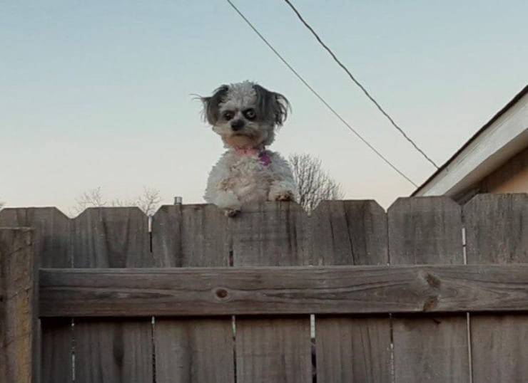 Il cagnolino, che sicuramente sarà un dolce e coccoloso cucciolo, era solo curioso di vedere chi passasse accanto alla sua proprietà, ma quando il passante ha deciso di scattargli una foto e condividerla sul suo account Twitter, il web si è scatenato.