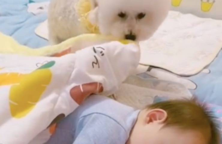 Il video del Bichon che si prende cura del neonato è apparso su TikTok grazie alla recente pubblicazione di @thecung_dethoung99, lo scorso 24 febbraio e ha finora totalizzato ben 119mila apprezzamenti. “È meraviglioso“, scrivono gli utenti mostrando tutta la loro sorpresa nei confronti dell’intelligenza e dalla dolcezza dimostrata dal Bichon à poil frisé.