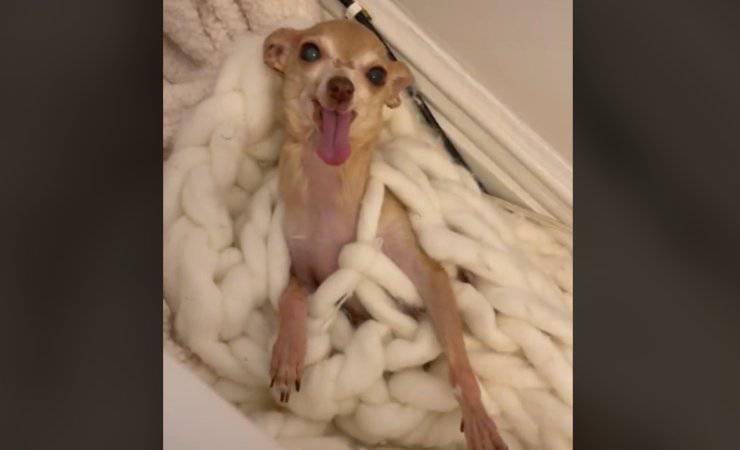 Ogni volta che i proprietari arrivano a casa, lei viene felicemente ad accoglierli alla porta. È di certo il modo che ha trovato per ringraziare i suoi umani di tutto l’amore che ha ricevuto e sta ricevendo tutt’ora. Ma un giorno il consueto rito non si è svolto, e questo ha preoccupato molto la coppia. “Mi sono spaventata all’istante, ma ho capito subito che era sotto la coperta e ho infilato la testa e il braccio dentro quando ci ha sentiti entrare“, ha riferito Claudia.
