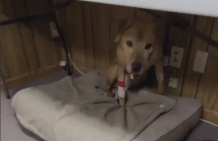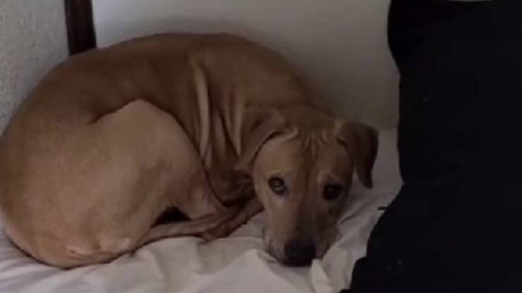 Scooby, un mix di Pitbull e Rhodesian Ridgeback, appare nella clip virale tremante sul letto mentre Chris, il suo tutore, gli parla con calma, pronunciando parole come “andrà tutto bene” e “sei un bravo ragazzo“. Quando è entrato a far parte della sua vita, Scooby non era addestrato a stare in casa, anzi veniva da una situazione alquanto drammatica visto che il cucciolo veniva usato come cane da combattimento. Non sapeva nemmeno camminare al guinzaglio, né scodinzolare e abbaiare.