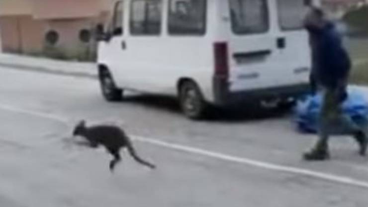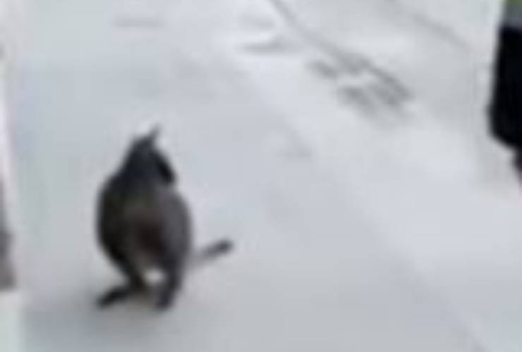 Un canguro se ne va in giro per le vie della città: un saltello davvero elastico, ripreso in un lungo video. Non intende farsi acchiappare.