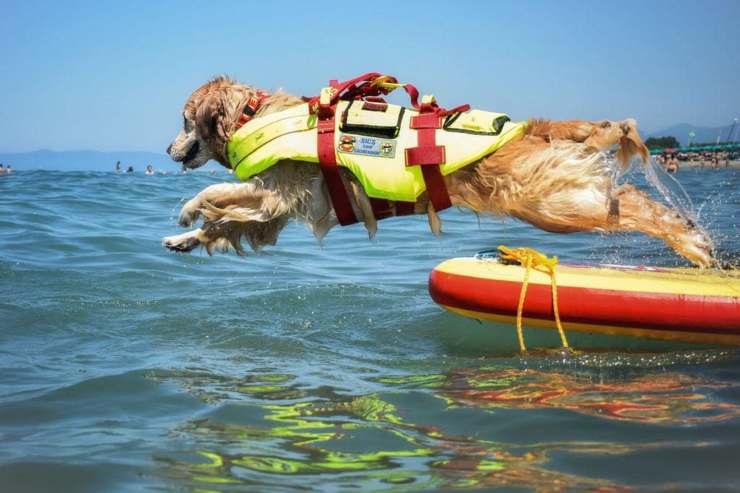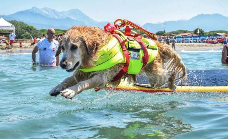 Infatti, sono addestrati a partire subito quando vedono il bagnino tuffarsi o che dà loro l’ordine. I cani hanno un salvagente apposta per permettere alla persona in difficoltà di aggrapparsi e poi piano piano la trasportano a riva nuotando. I Golden Retriever hanno ottime capacità da nuotatori.